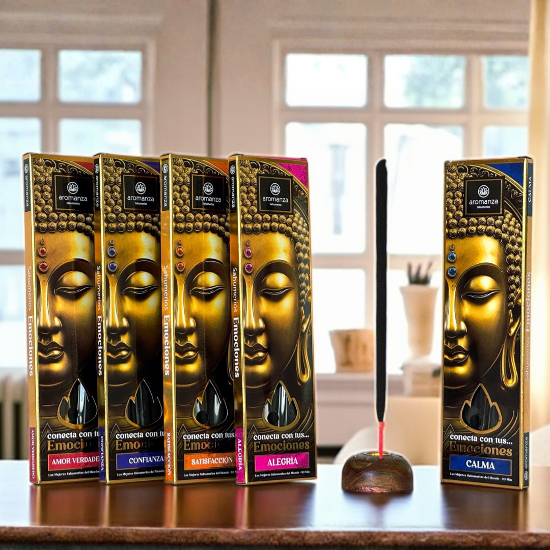 La lÃnea «Emociones» de sahumerios Aromanza ofrece una variedad de fragancias diseñadas para despertar y realzar diferentes estados de ánimo y sentimientos.Â